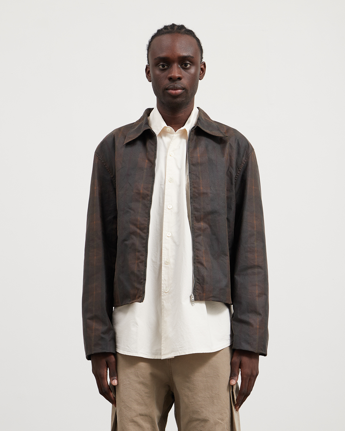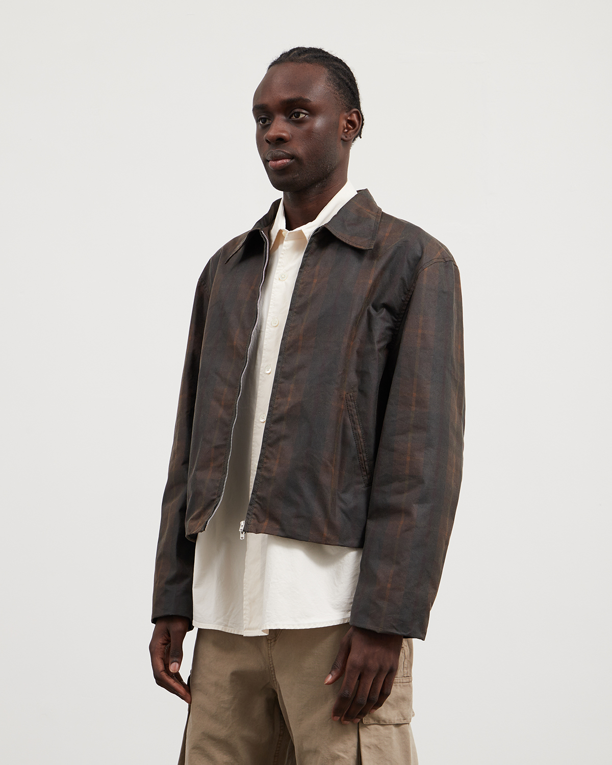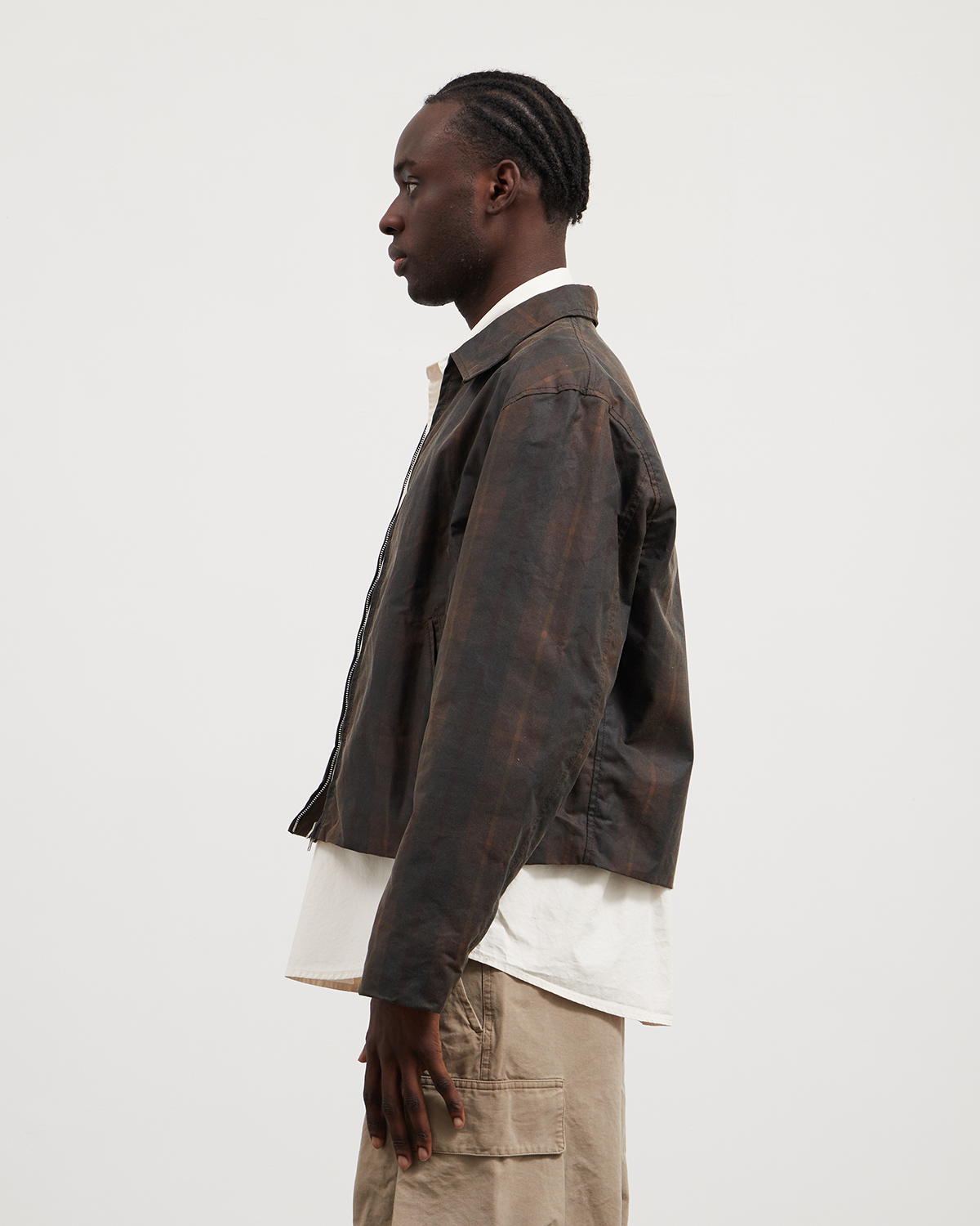 The Mini Jacket in Hunterbrown Tartan is a weatherproof jacket from Our Legacy. Produced in a waxed Scottish BCI cotton fabric, the Mini Jacket features two way RiRi zip, boxy fit, cupro lining and jet front pockets. The fabric is made from a densely woven waxed cotton and is wind proof in colder conditions, breathable and water repellent. The garment and the waxed fabric naturally distress over time to finish the design process, however the wax finish can be continually re-proofed, meaning that the jacket’s performance will last for many years. Crafted from 100% cotton. Manufactured in Lithuania.