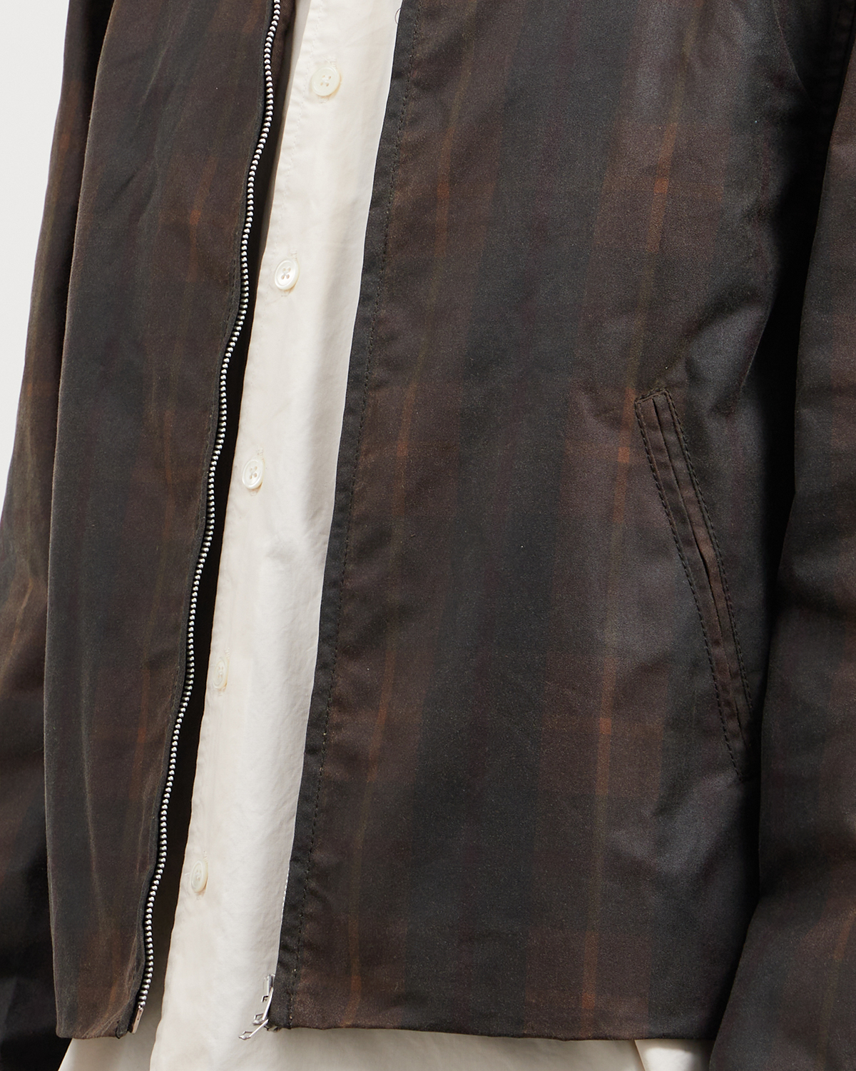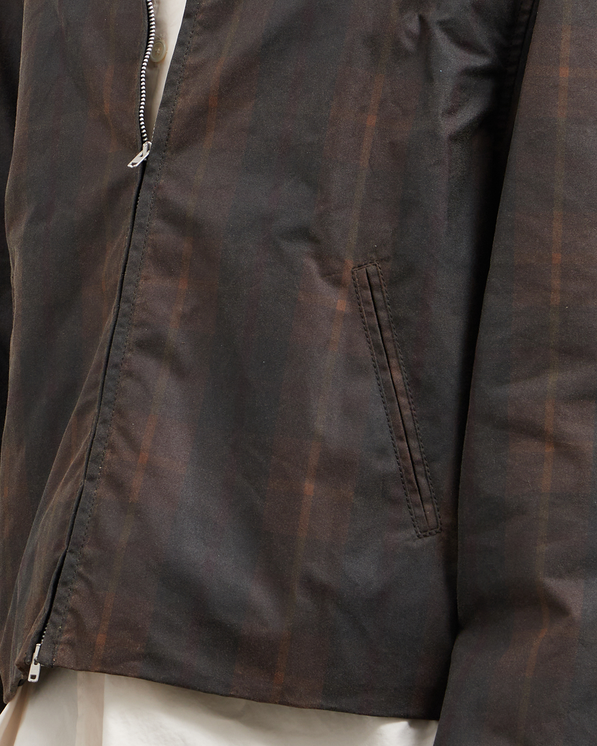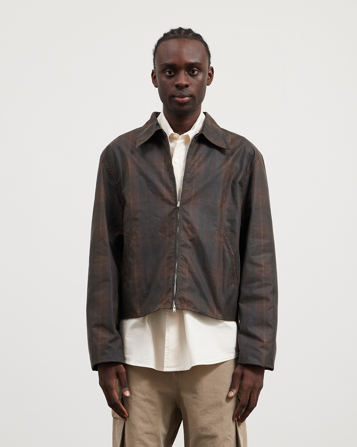 The Mini Jacket in Hunterbrown Tartan is a weatherproof jacket from Our Legacy. Produced in a waxed Scottish BCI cotton fabric, the Mini Jacket features two way RiRi zip, boxy fit, cupro lining and jet front pockets. The fabric is made from a densely woven waxed cotton and is wind proof in colder conditions, breathable and water repellent. The garment and the waxed fabric naturally distress over time to finish the design process, however the wax finish can be continually re-proofed, meaning that the jacket’s performance will last for many years. Crafted from 100% cotton. Manufactured in Lithuania.