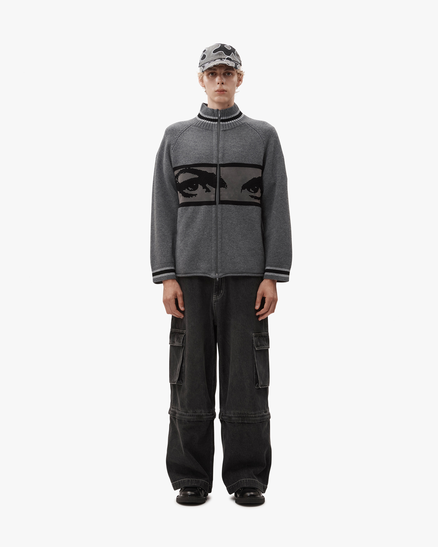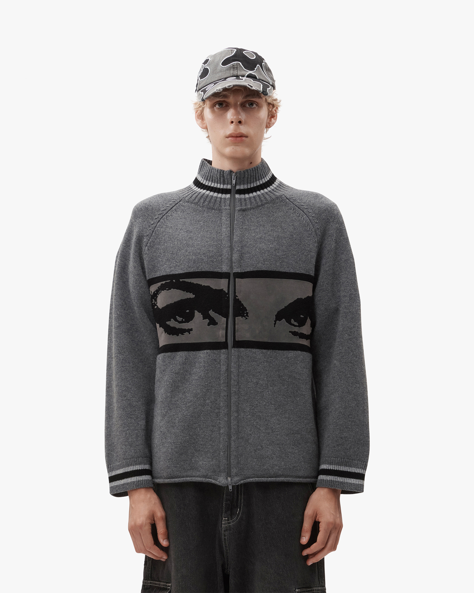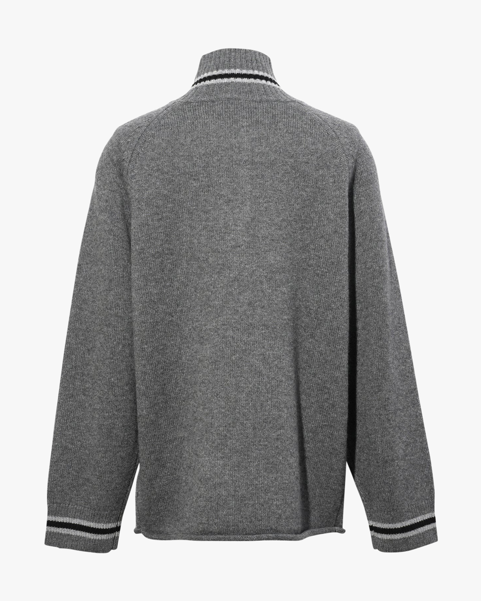 · 2×2 contrast stripe rib at neck and sleeve cuff