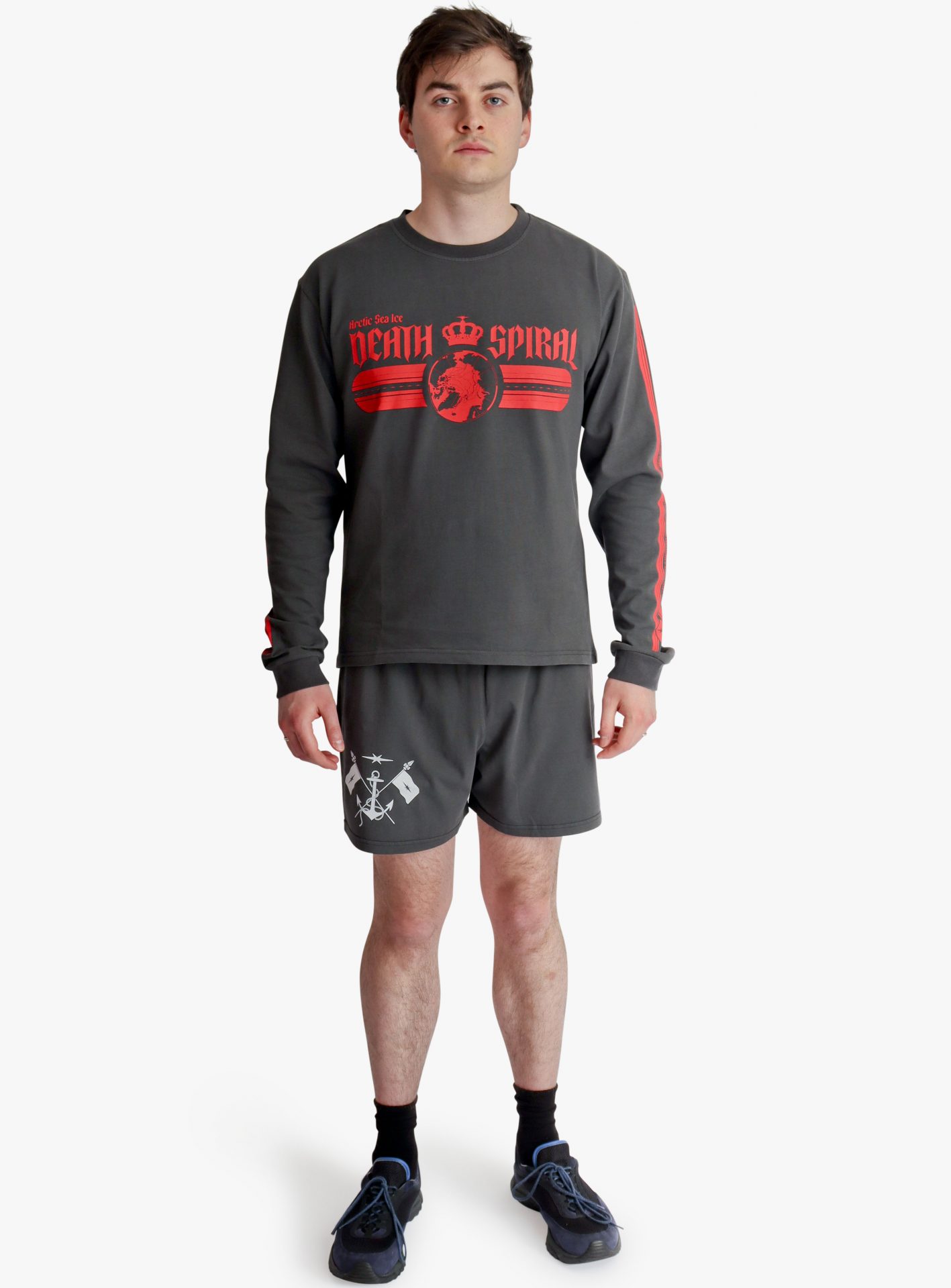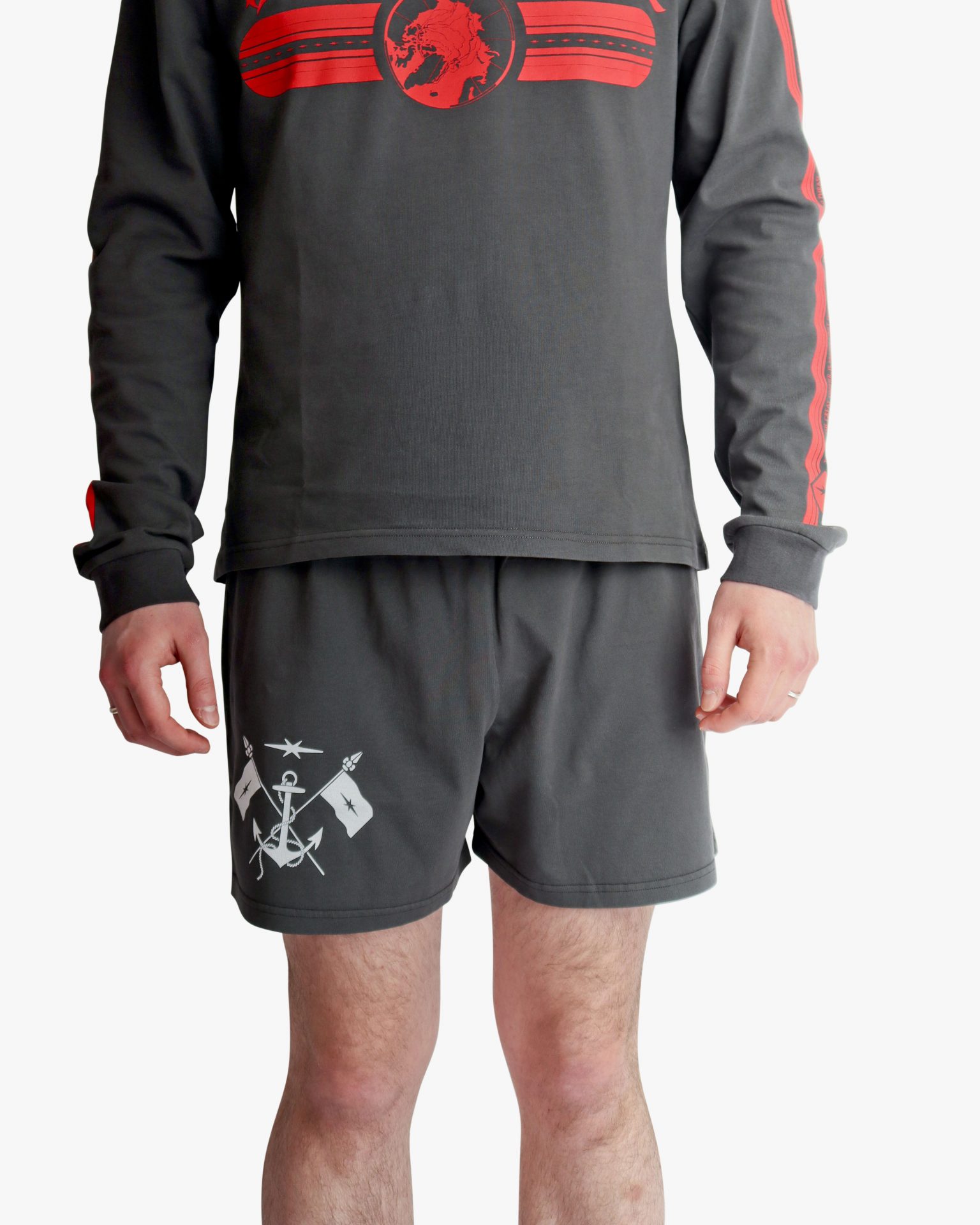 Derived from a military boxer short, the Marine Pyjama Shorts are a cotton jersey athletic short from PHIPPS. The shorts feature an elasticated waist and seasonal marine logo on left leg in a vintage black colourway. Crafted from 100% recycled cotton. Manufactured in Portugal.